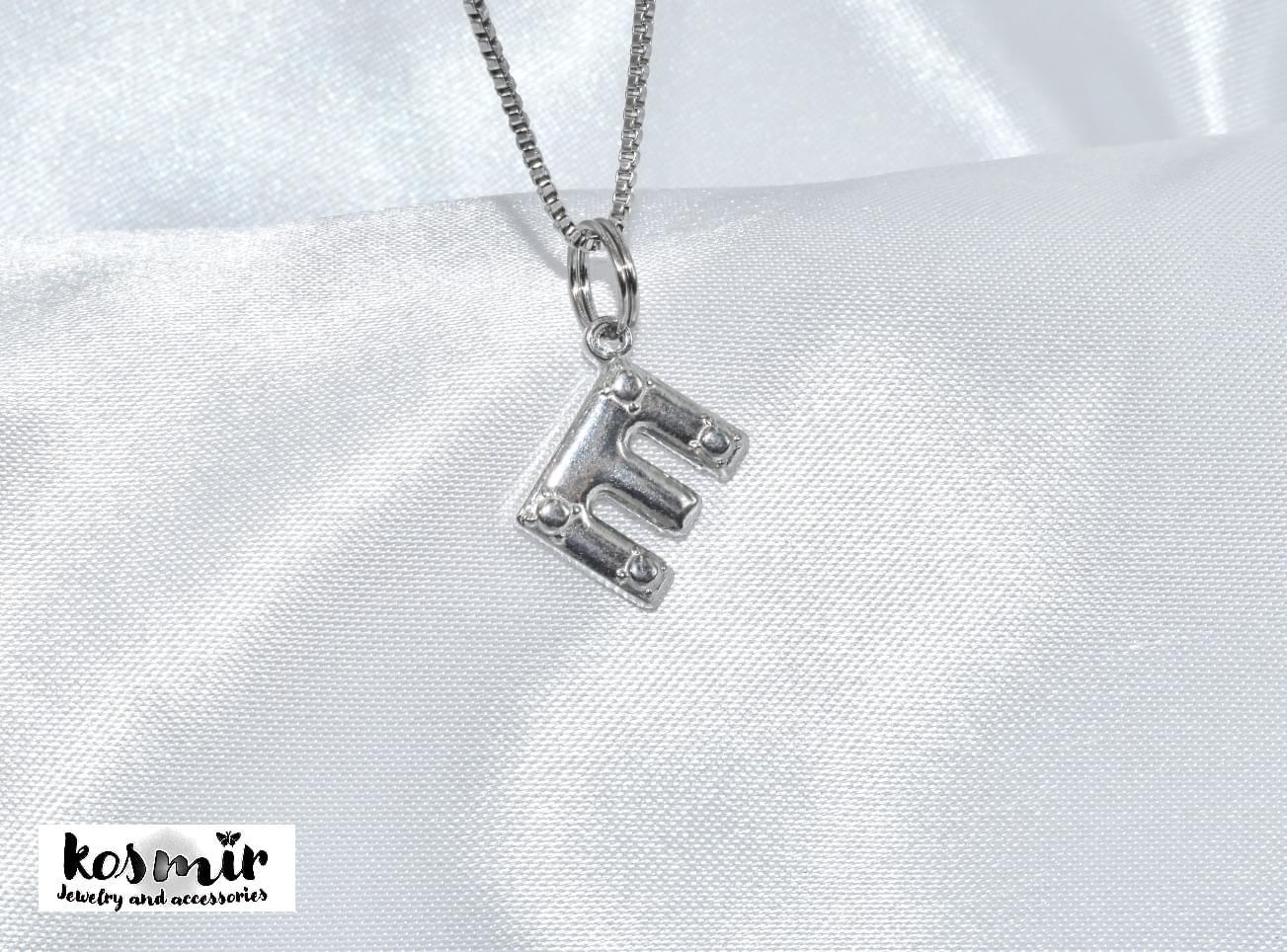 Ατσάλινο γράμμα E σε ασημένιο χρώμα με ασημένια αλυσίδα box