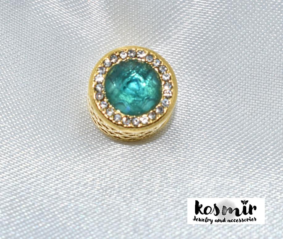Ατσάλινο χρυσό bead με γαλάζιο ζιργκόν και διάφανα ζιργκονάκια για το βραχιόλι Kosmir