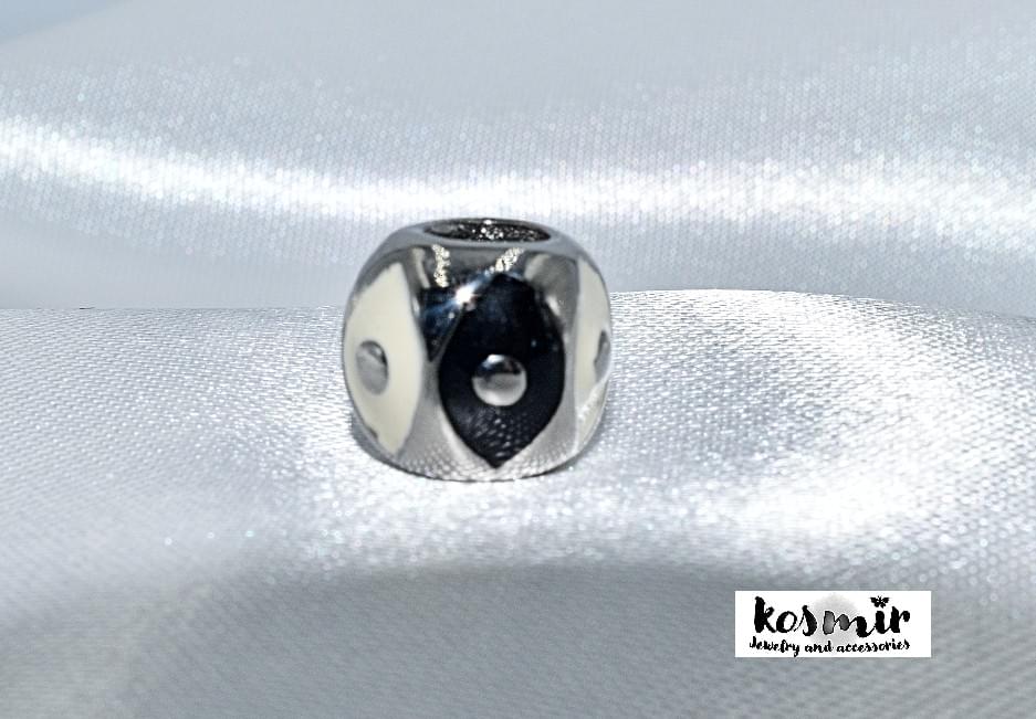 Ατσάλινο ασημένιο bead γιν και γιανγκ ασπρόμαυρο για το βραχιόλι Kosmir. Ανθεκτικό στο νερό, τη θάλασσα και τα χημικά.