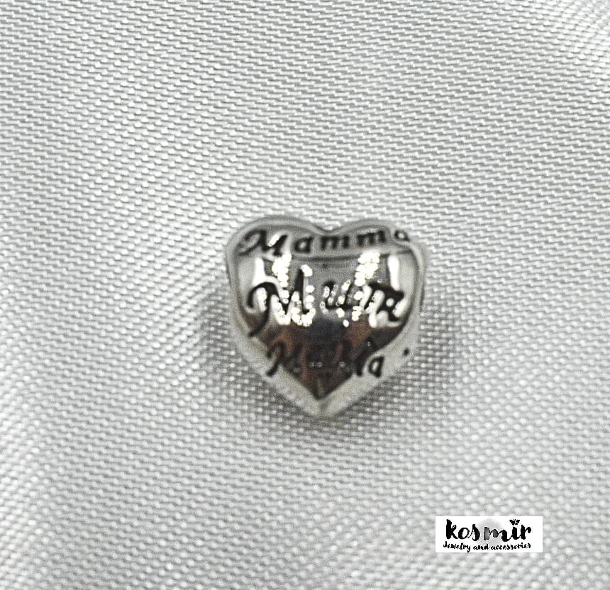 Ατσάλινο ασημένιο bead καρδούλα με επιγραφη “Mom” και “Mama” για το βραχιόλι Kosmir