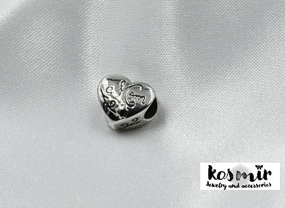 Ατσάλινο ασημένιο bead καρδούλα με επιγραφη “Mom” για το βραχιόλι Kosmir