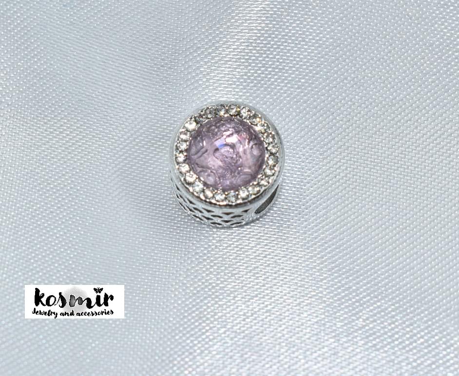 Ατσάλινο ασημένιο bead μωβ λιλά με λευκά ζιργκόν για το βραχιόλι kosmir