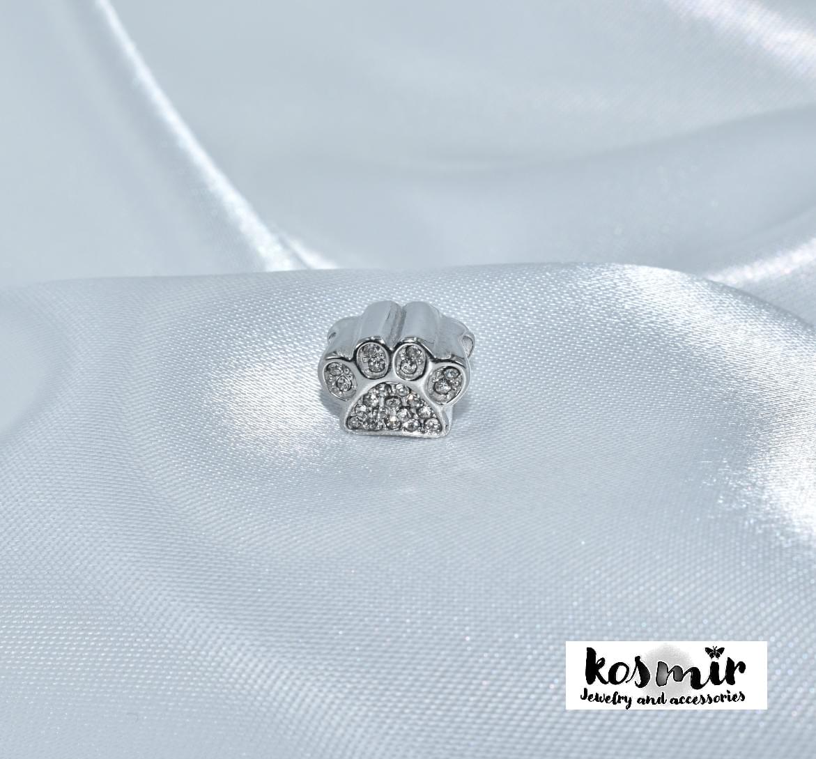 Ατσάλινο ασημένιο bead πατουσάκι με ζιργκόν για το βραχιόλι Kosmir. Ανθεκτικό στο νερό, τη θάλασσα και τα χημικά.