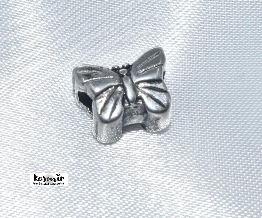 Ατσάλινο ασημένιο bead πεταλούδα για το βραχιόλι Kosmir. Ανθεκτικό στο νερό, τη θάλασσα και τα χημικά.