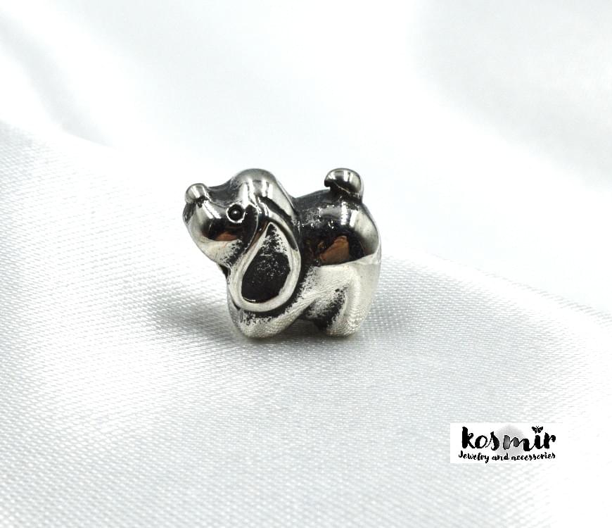 Ατσάλινο ασημένιο bead σκυλάκι για το βραχιόλι Kosmir. Ανθεκτικό στο νερό, τη θάλασσα και τα χημικά.