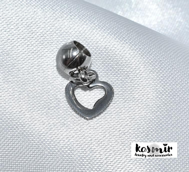 Ατσάλινο ασημένιο charm καρδούλα με σχέδιο για το βραχιόλι Kosmir