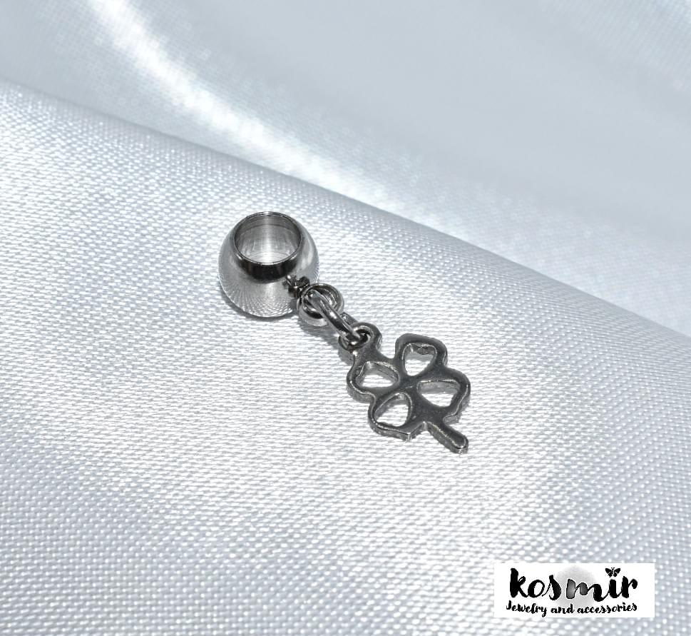 Ατσάλινο ασημένιο charm τετράφυλλο τριφύλλι για το βραχιόλι Kosmir. Ανθεκτικό στο νερό, τη θάλασσα και τα χημικά.