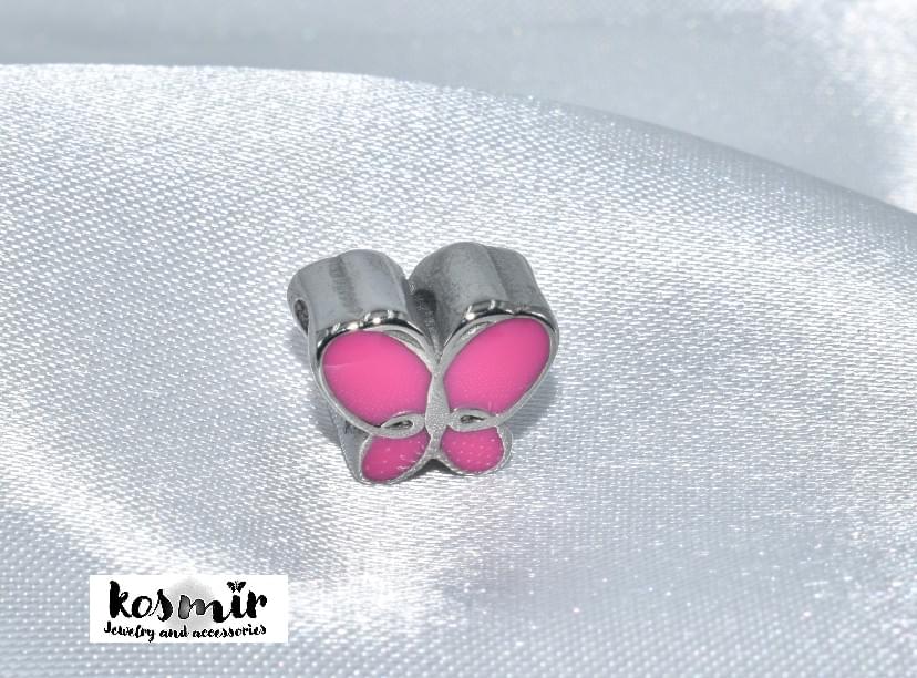 Ατσάλινο ροζ ασημένιο bead πεταλούδα για το βραχιόλι Kosmir. Ανθεκτικό στο νερό, τη θάλασσα και τα χημικά.