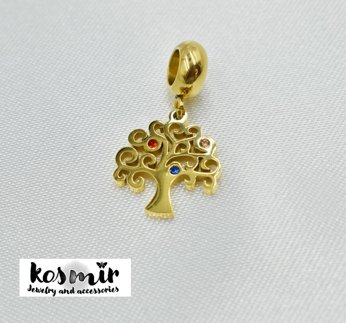 Ατσάλινο χρυσό charm Tree of Life με ζιργκόν για το βραχιόλι kosmir