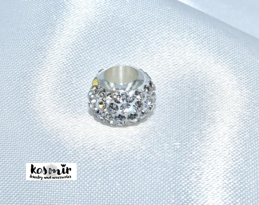 Ατσάλινο bead με ασημένια διαφανες ζιργκόν για το βραχιόλι Kosmir