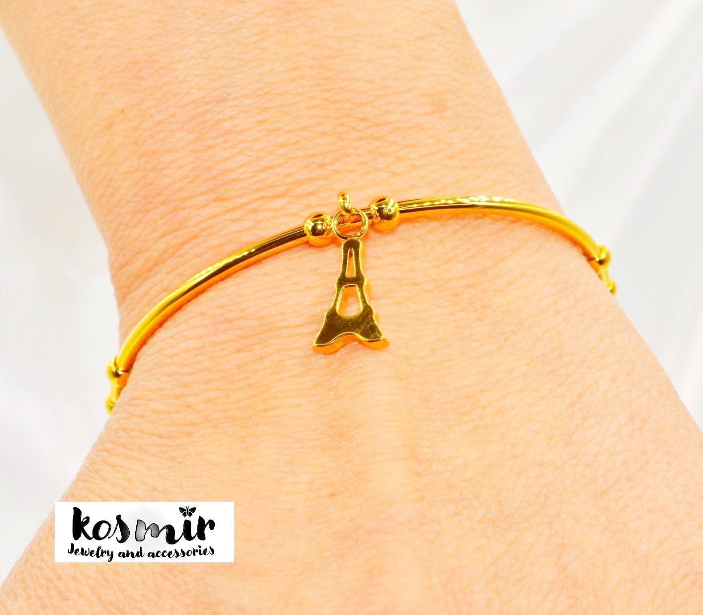 Ατσάλινο ανοιχτό βραχιόλι Eifel Tower σε χρυσό χρώμα