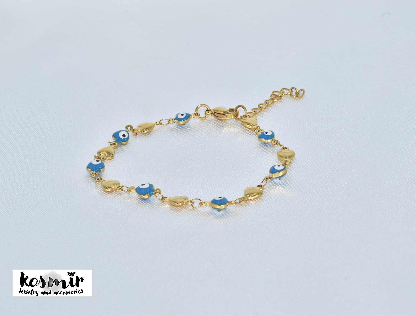 Ατσάλινο χρυσό βραχιόλι με καρδούλες και ματάκια