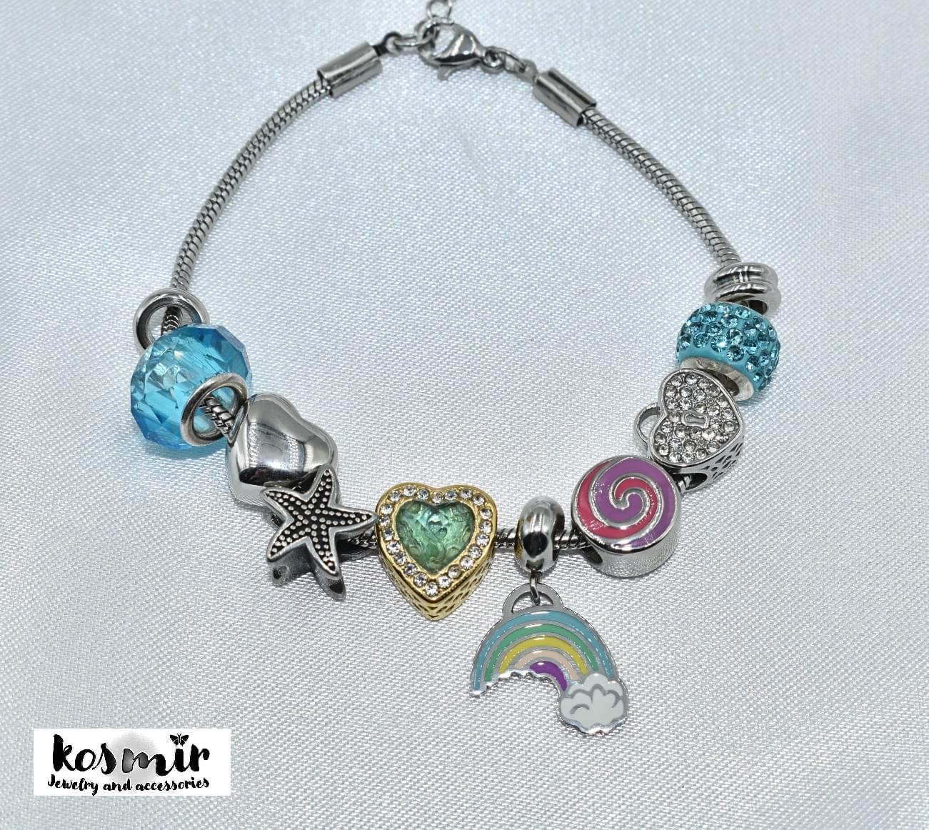 Το βραχιόλι της “Θάλασσας” αποτελεί μία παραλλαγή του βραχιολιού Kosmir που συνδυάζει έξυπνα charms και beads με αποχρώσεις και σχήματα της θάλλασας.