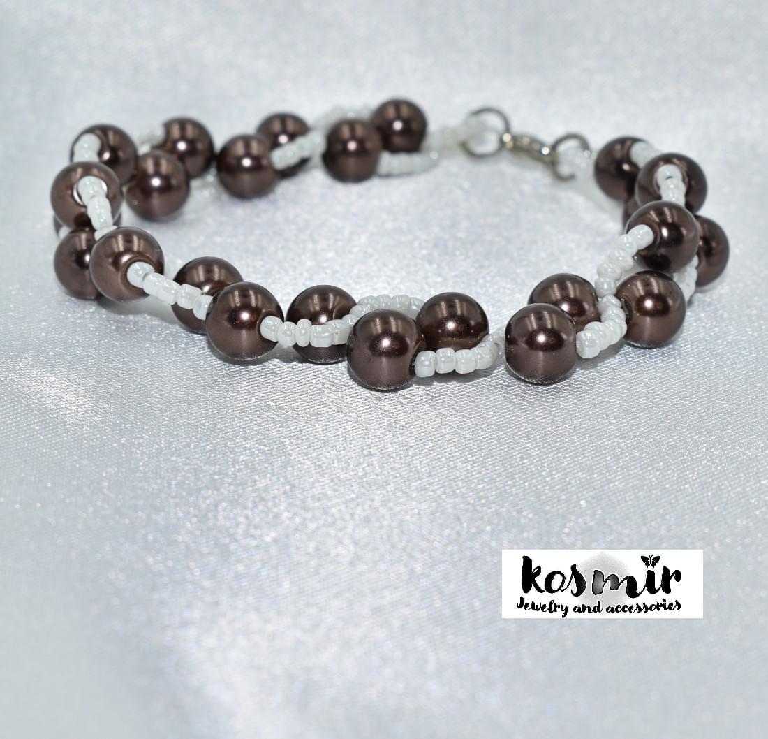 Ένα μοναδικό χειροποίητο βραχιόλι με λευκές χάντρες και πέρλες στο χρώμα της σοκολάτας