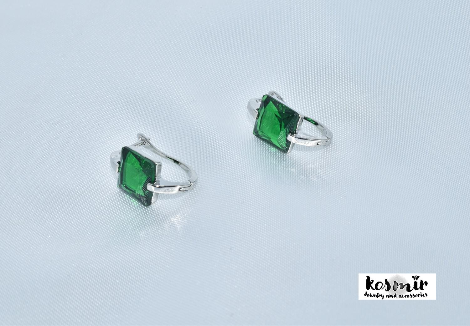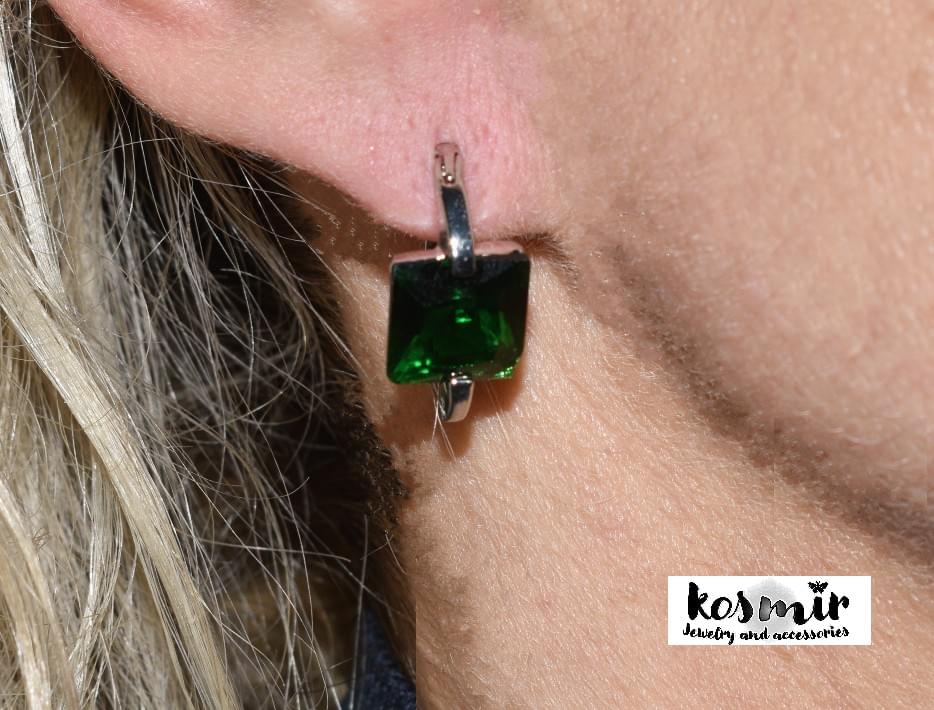 Ατσάλινα ασημένια σκουλαρίκια με πράσινο κρύσταλλο