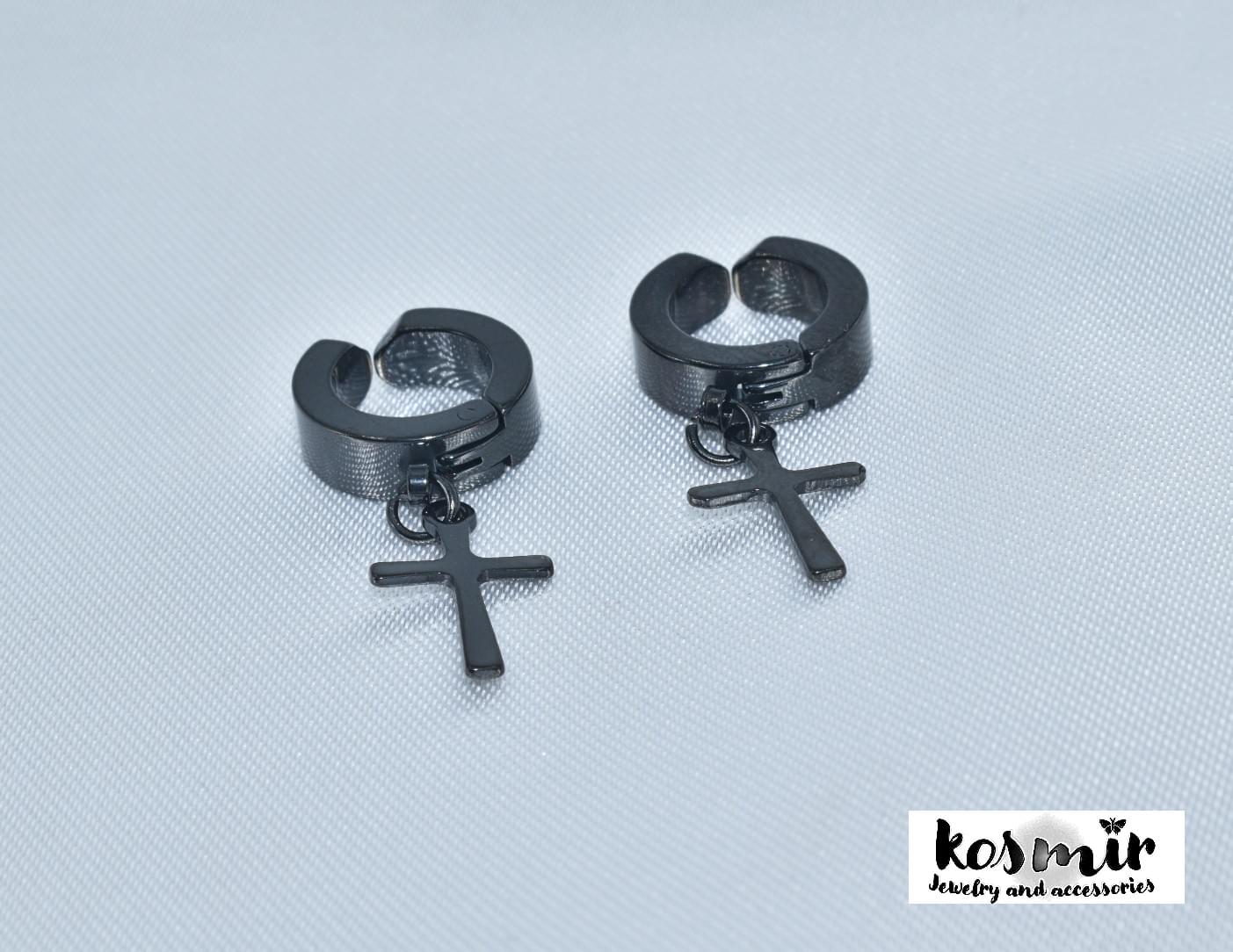 Ατσάλινα σκουλαρίκια σταυροί σε μαύρο χρώμα