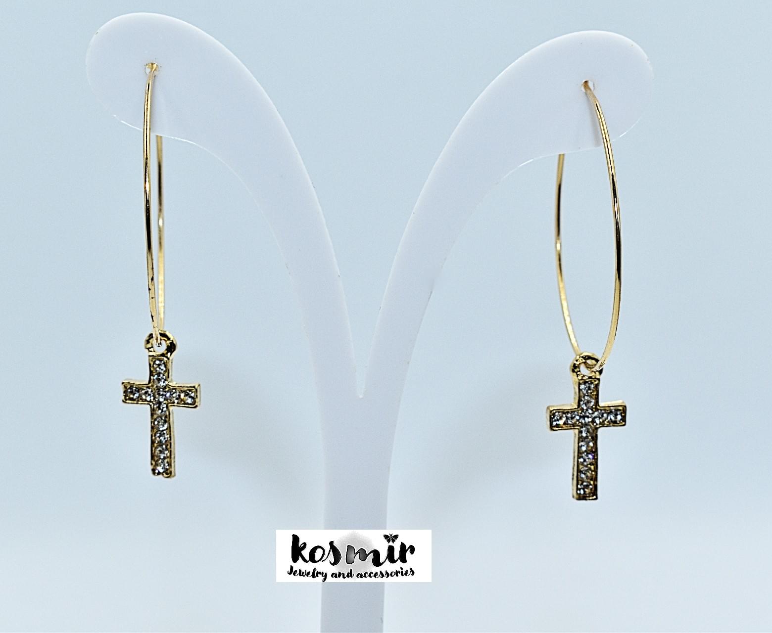 Λεπτοί επίχρυσοι κρίκοι με σταυρό απο ζιργκόν. Μήκος :4,5 cm