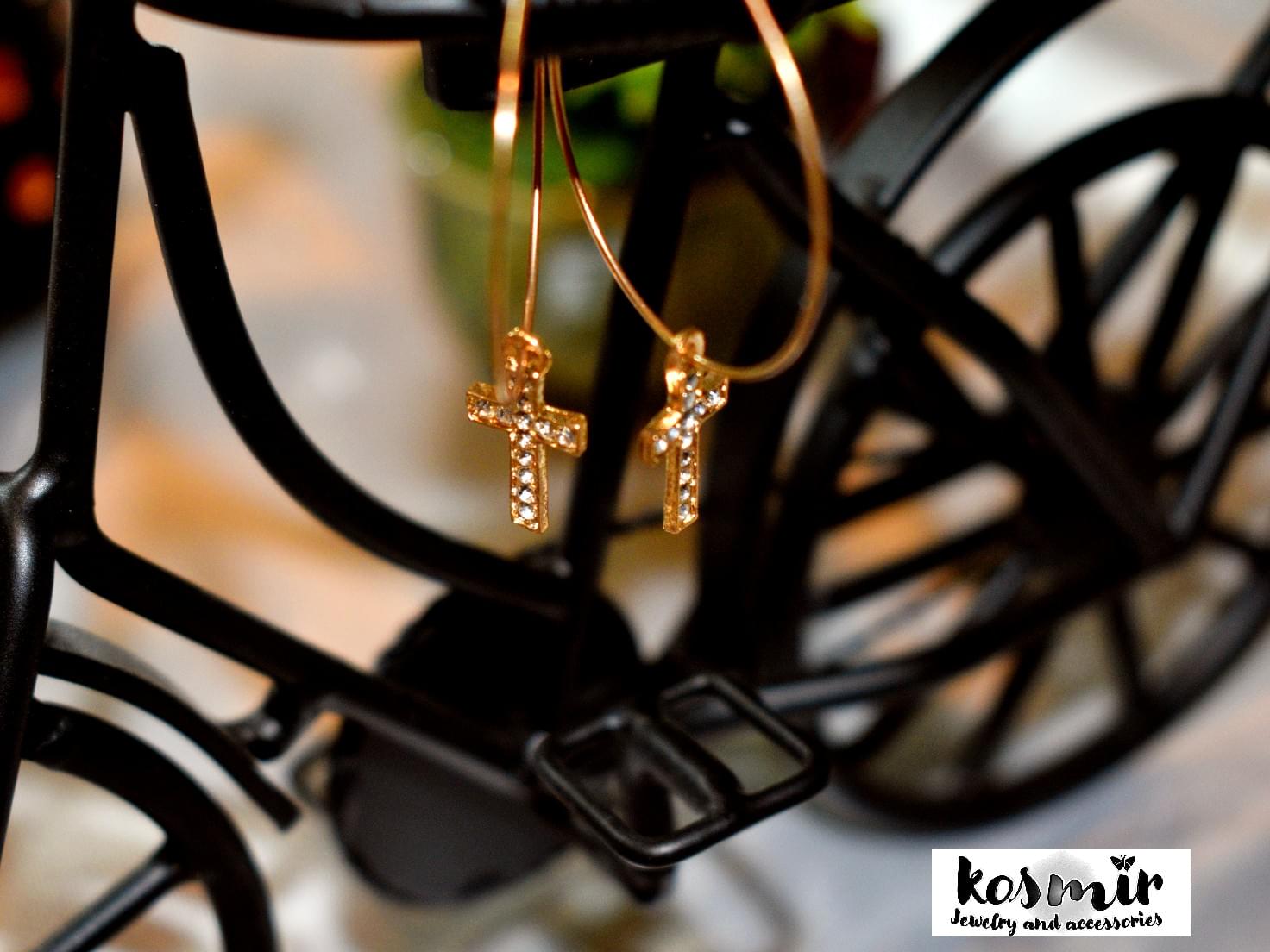 Λεπτοί επίχρυσοι κρίκοι με σταυρό απο ζιργκόν