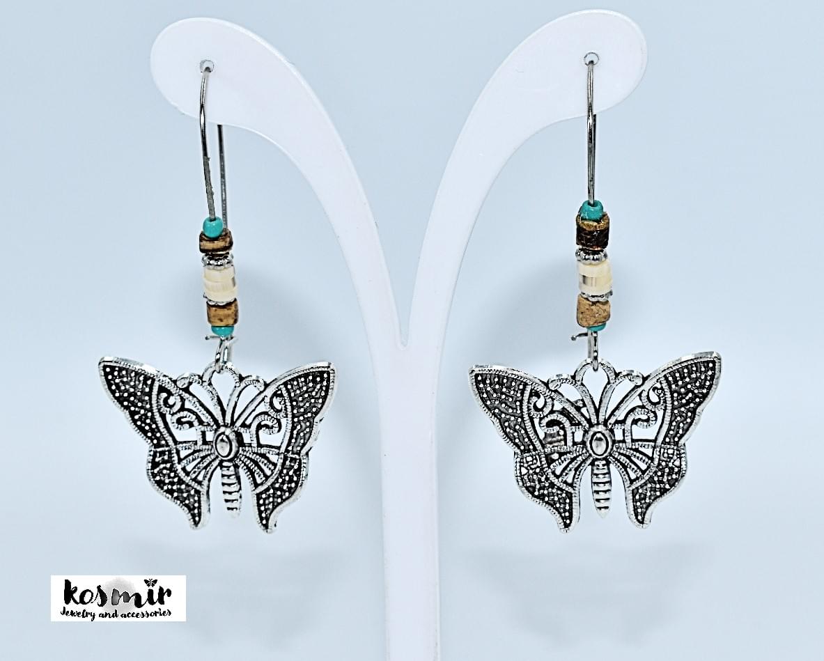 Οversized σκουλαρίκια με επάργυρες πεταλούδες και χάντρες.Μήκος :6 cm