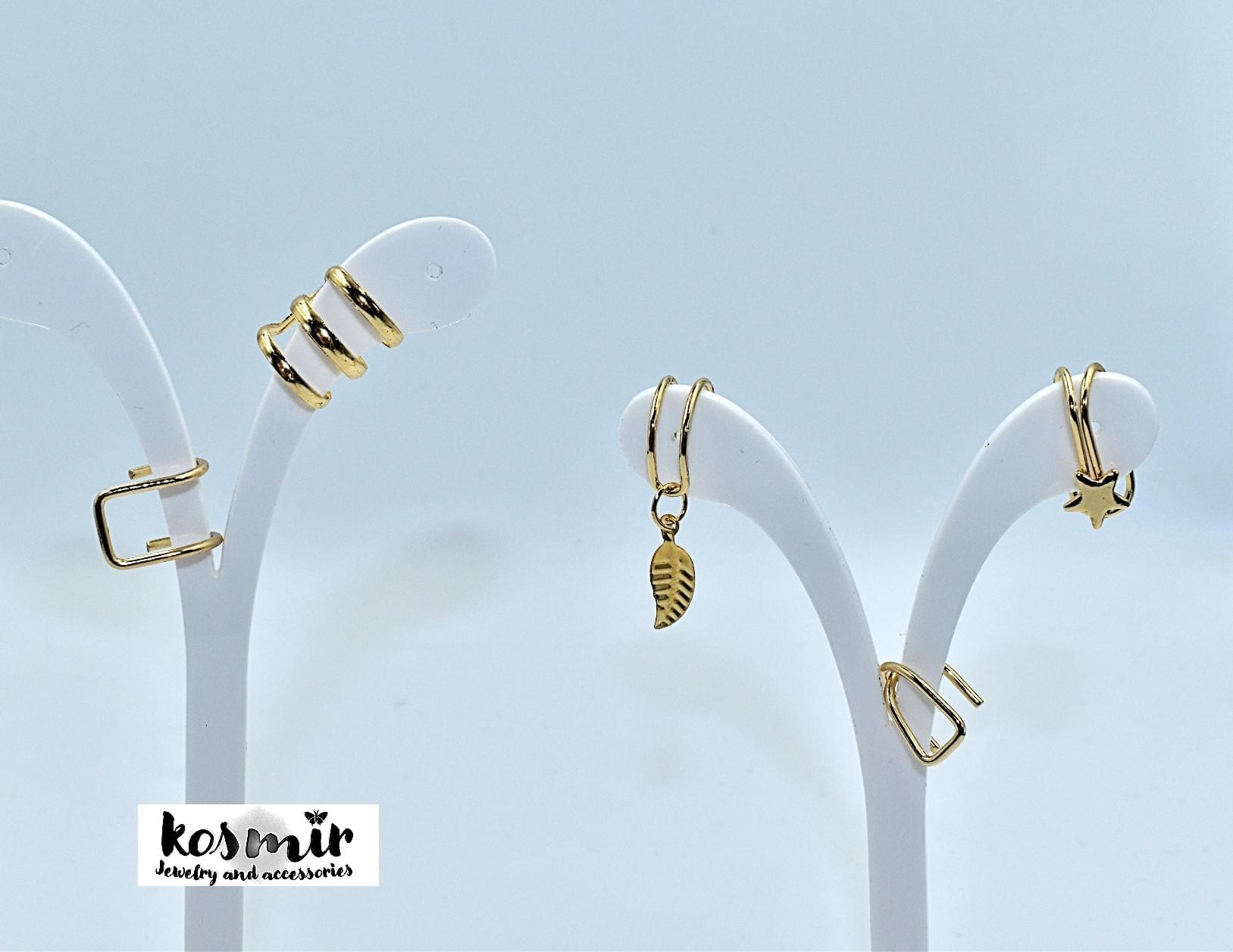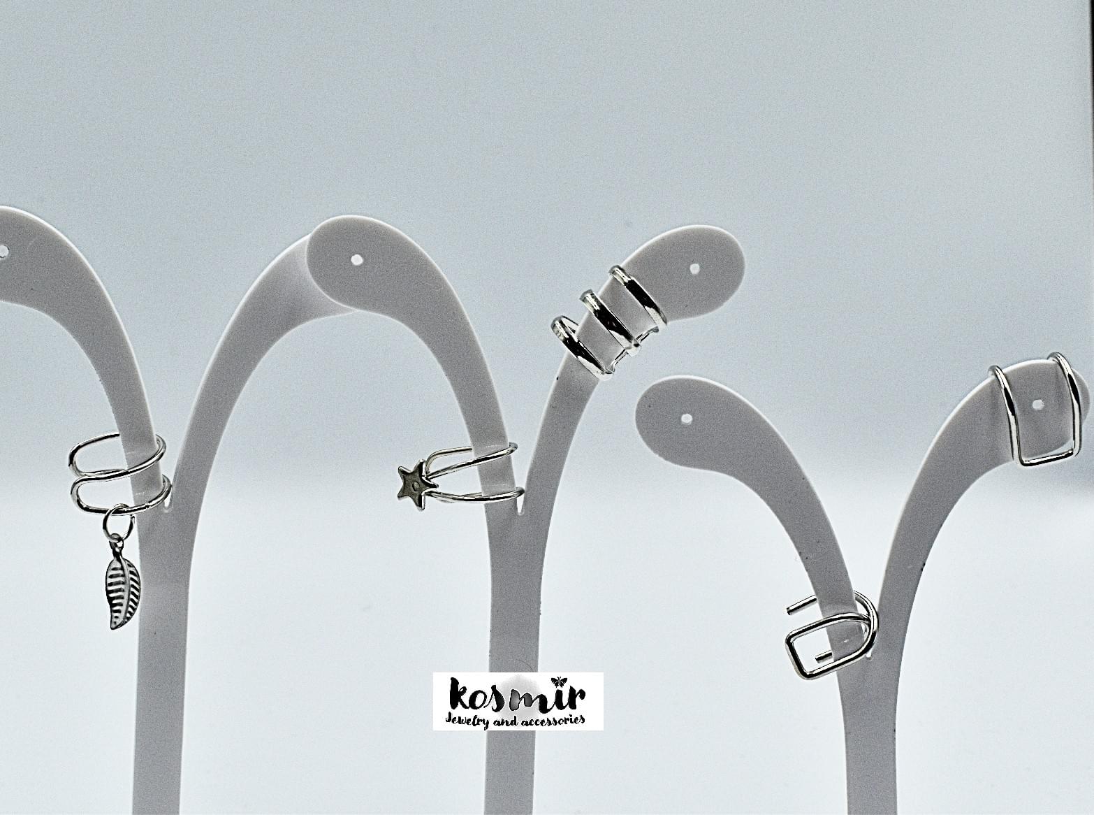 Σετ μίνιμαλ σκουλαρίκια cuff σε ασημένιο χρώμα.