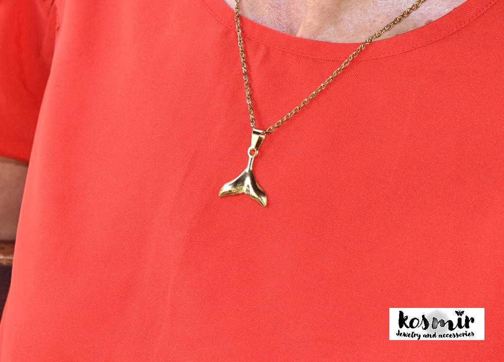 Ατσάλινο κολιέ Whale Tail σε χρυσό χρώμα