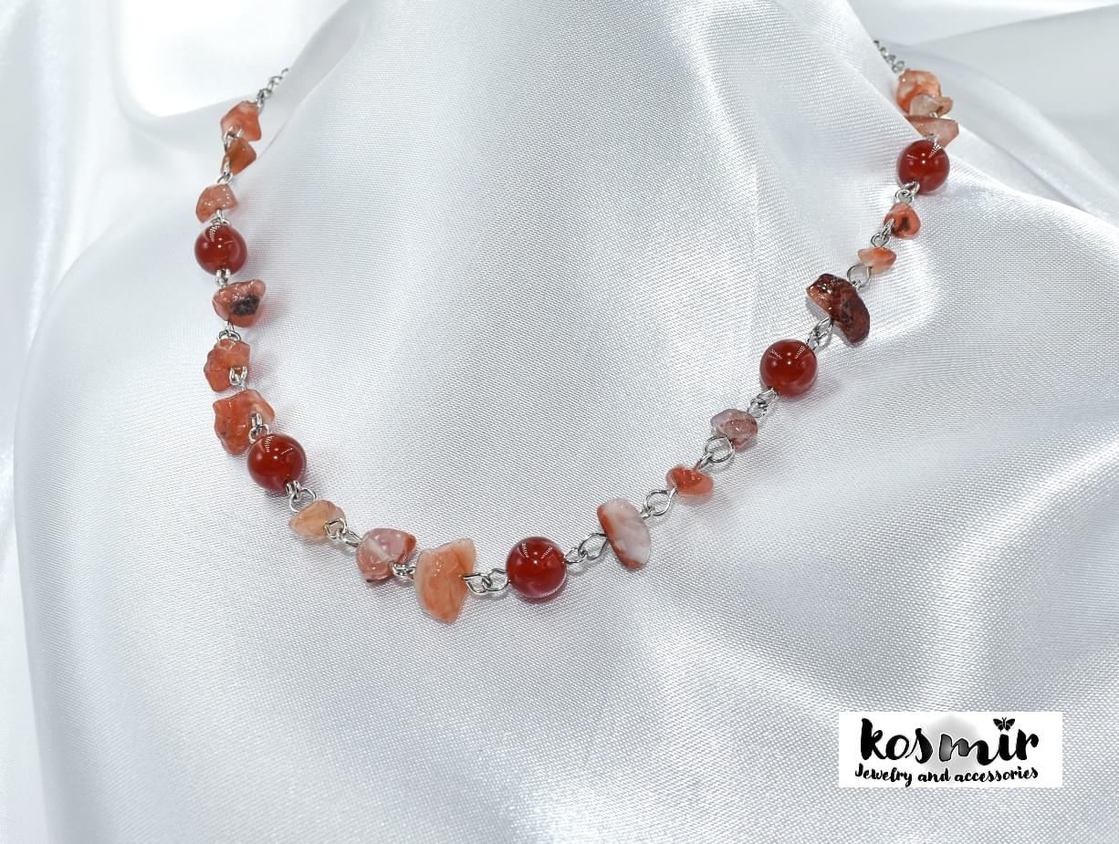 κολιέ με φυσικές πέτρες σε πορτοκαλί χρωματισμούς