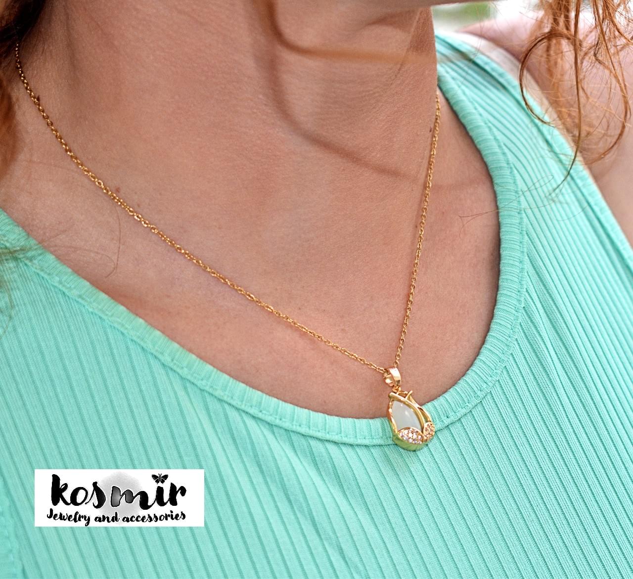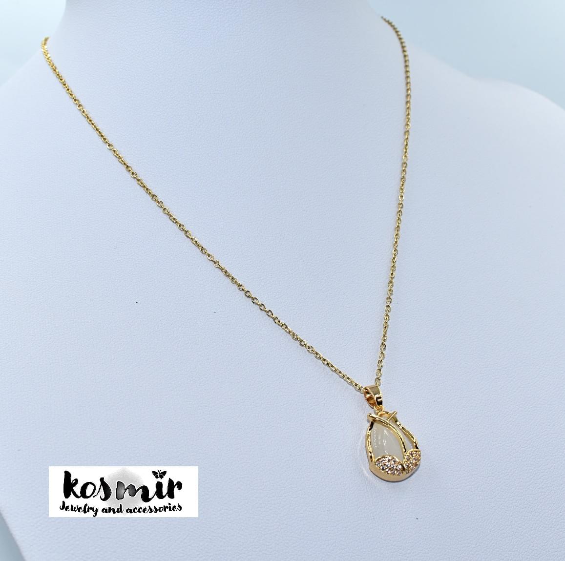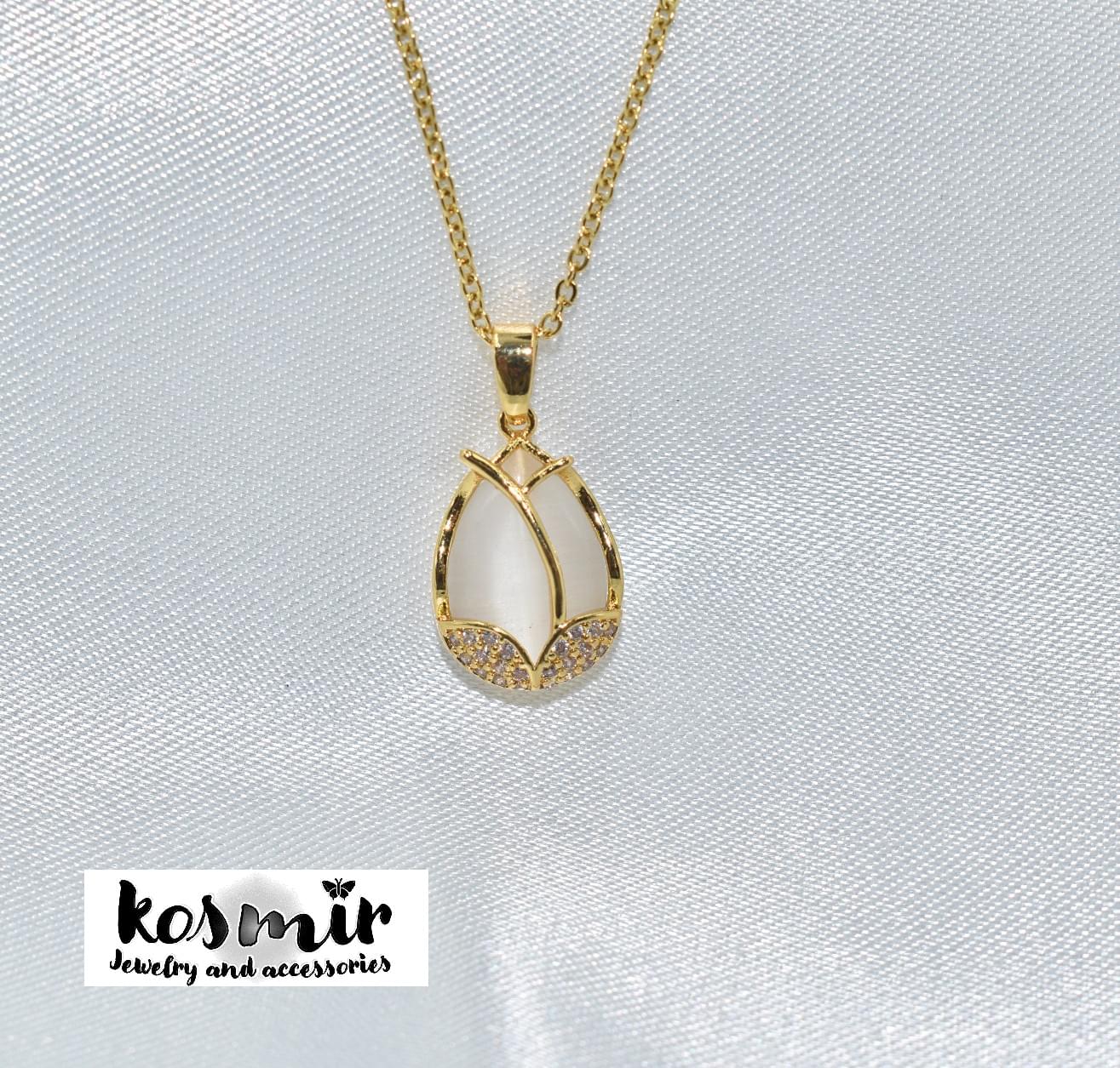 Stainless steel μενταγιόν με λευκή πέτρα δακρύ